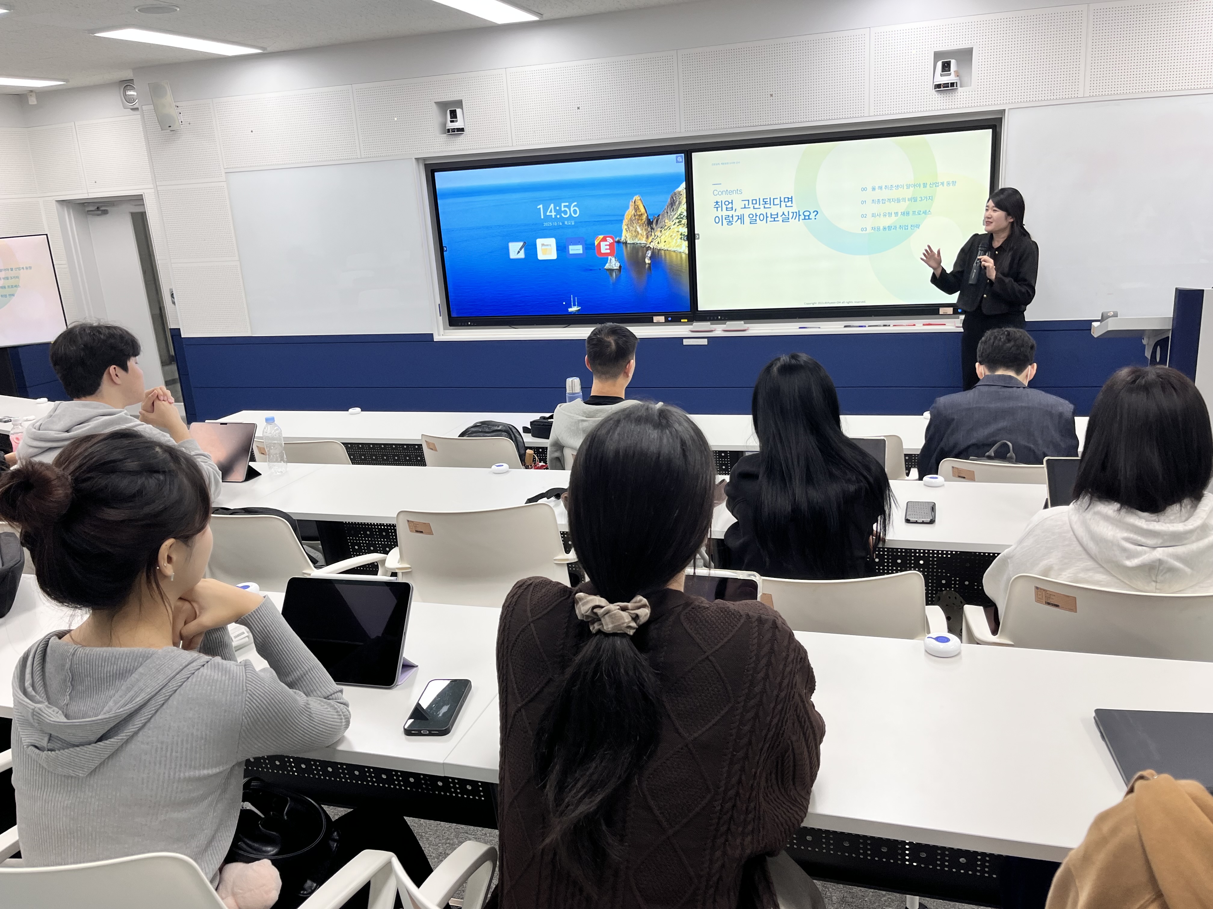 강의에서는 최신 채용 트렌드와 4차 산업혁명 시대에 필요한 대학생 핵심 역량, 그리고 직무·역량·우대사항 등 채용 정보 해석 방법이 다뤄져 학생들의 높은 관심을 끌었습니다. 참여한 학생들은 “급변하는 취업 환경을 이해하고 앞으로의 대학생활과 경력개발에 실질적으로 도움이 될 만한 유익한 시간이었다”는 소감을 전했습니다. 앞으로도 우리 학과는 학생들의 진로 역량 강화를 위해 다양한 프로그램을 지속적으로 운영할 예정입니다. |