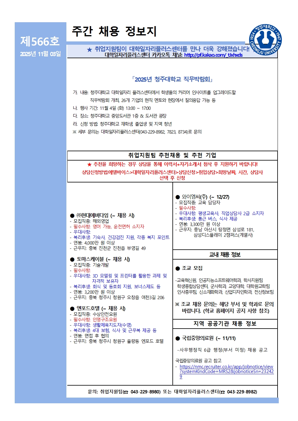 취업게시판 HOME 취업&진로 취업게시판 프린트 취업게시판 상세보기, 제목, 내용, 파일, 작성자등의 정보를 제공합니다. 제목 채용정보 소식지 제566호 사진 확대보기 채용정보 소식지 제566호입니다. 파일 채용정보 소식지 제566호.jpg 작성자 복재엽 (수학교육과) 목록 다음글 채용정보 소식지 제565호